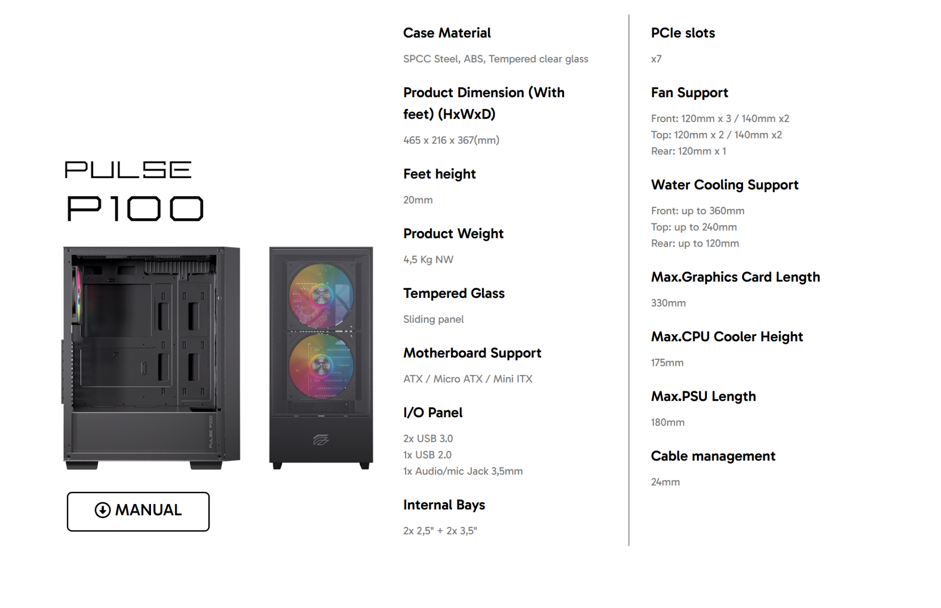 MB hỗ trợ: ATX / Micro ATX / Mini ITX