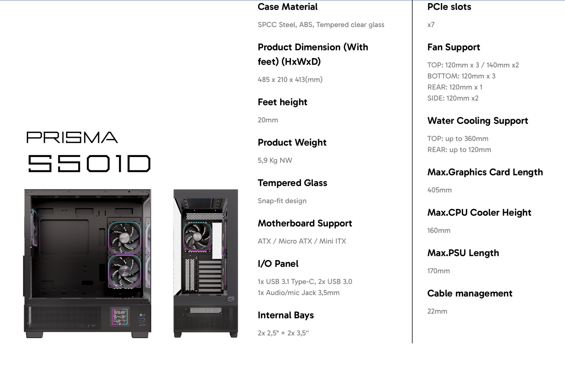 Side: 120mm x2 (Sẵn 2 Fan ARGB)