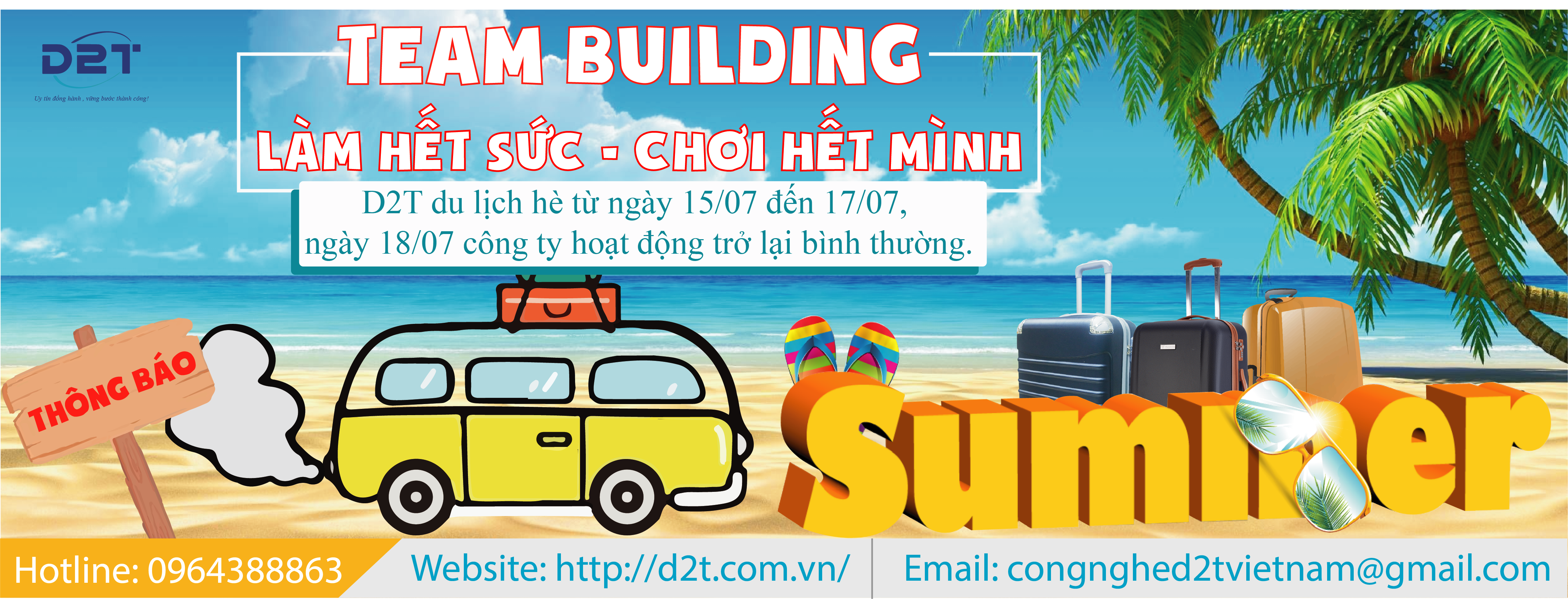 D2T trân trọng thông báo tới Quý Khách hàng/ Đối tác thời gian nghỉ du lịch của công ty để thuận tiện sắp xếp công việc và chủ động liên hệ.