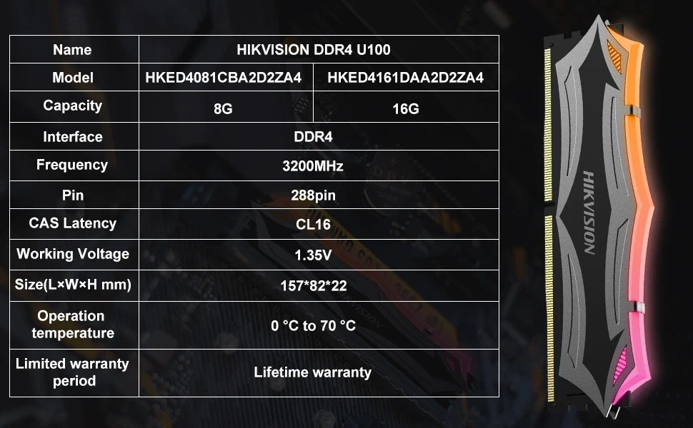 1. Tiết kiệm chi phí: Bộ nhớ Hikvision U100 là mô-đun bộ nhớ DDR4, được làm bằng các hạt chất lượng cao nguyên bản và công nghệ sản xuất trưởng thành