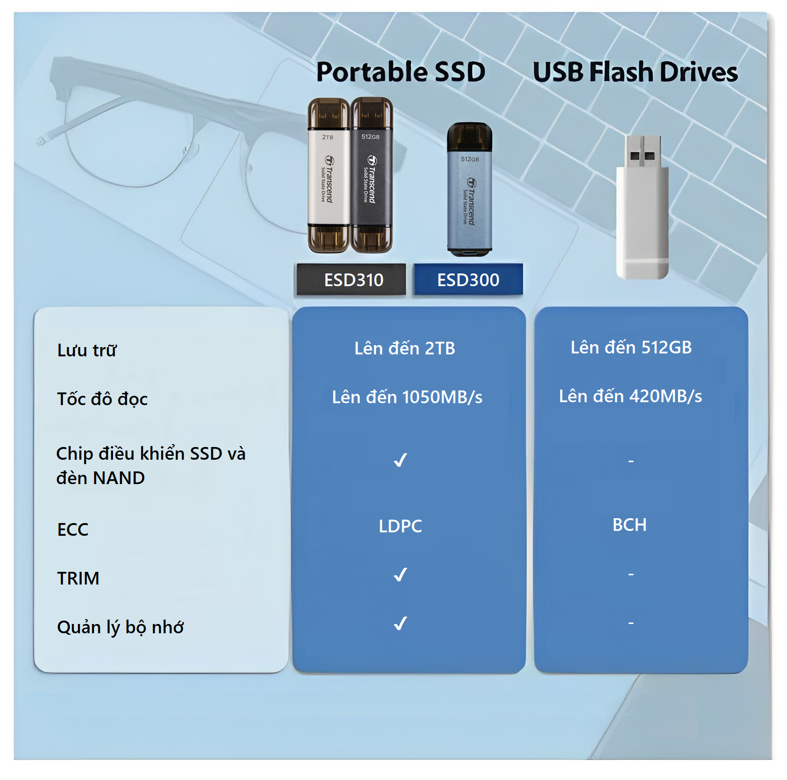 • Sự khác biệt giữa ESD310C Transcend và USB thông thường là gì