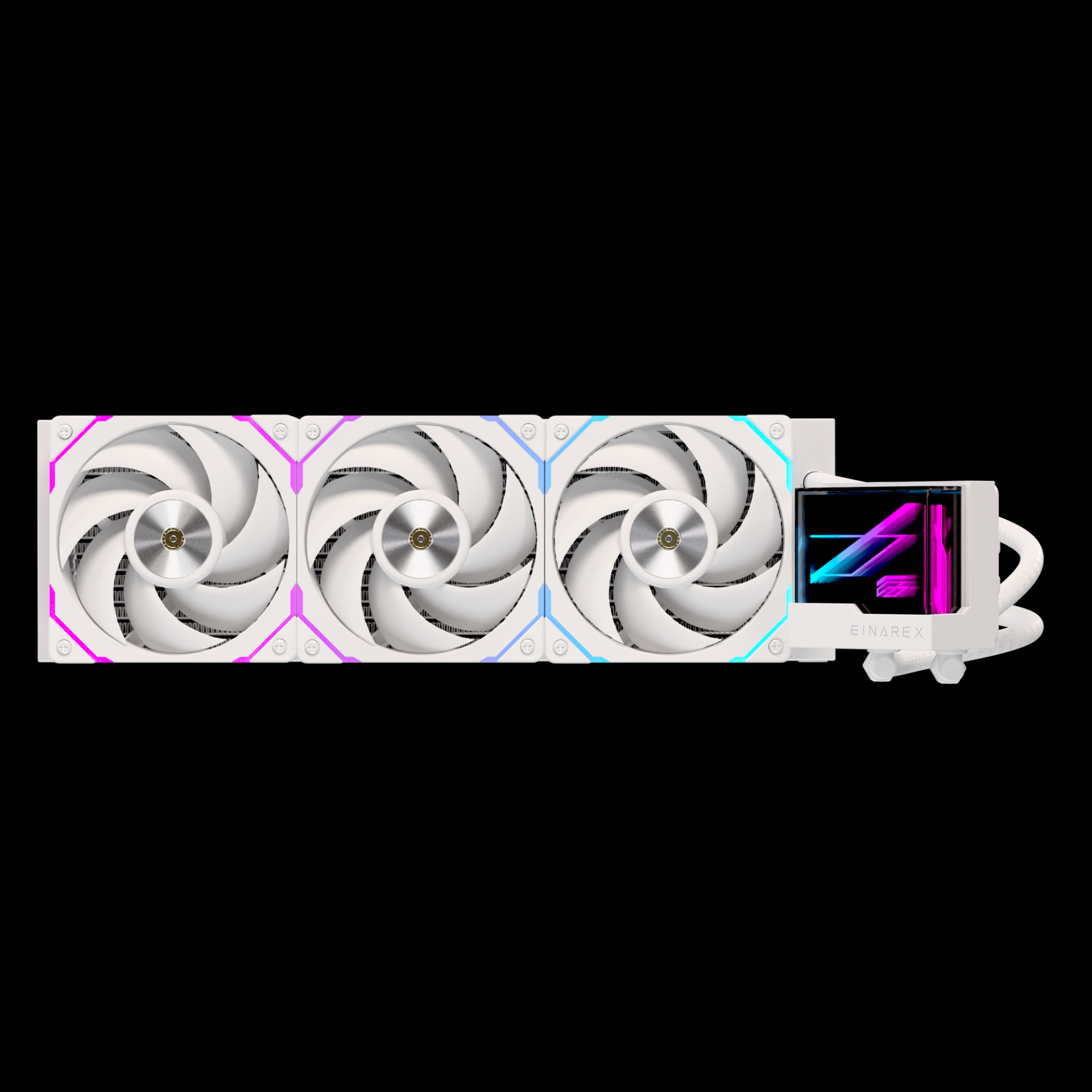 Hệ thống ba quạt EX-12A với vòng bi thủy lực (FDB) cho lưu lượng gió mạnh mẽ lên đến 74.22 CFM và áp suất tĩnh 4.42mmH₂O, đảm bảo luồng khí ổn định và hiệu quả tản nhiệt vượt trội. Nhờ công nghệ PWM thông minh, quạt tự động cân bằng giữa hiệu suất và độ êm ái, mang lại trải nghiệm làm mát mạnh mẽ nhưng vẫn yên tĩnh. Đây chính là lựa chọn hoàn hảo cho những ai muốn một giải pháp tản nhiệt nước AIO vừa mạnh mẽ, vừa đậm chất thẩm mỹ.