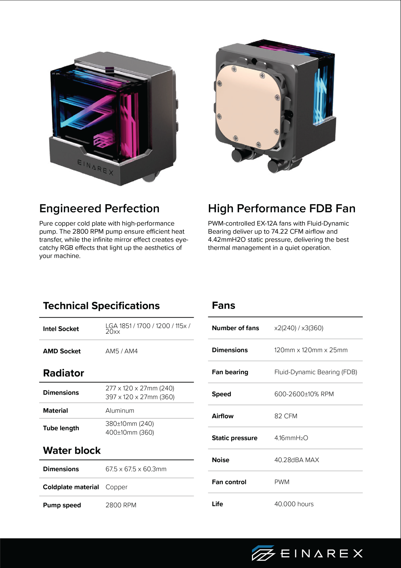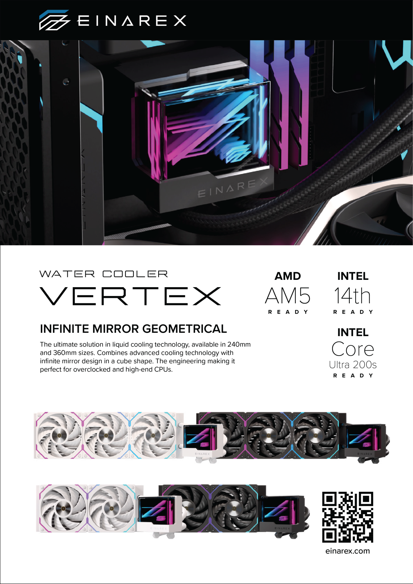 Sở hữu mặt tiếp xúc đồng nguyên chất cùng bơm tốc độ 2800 RPM, VERTEX 240 mang đến khả năng truyền nhiệt nhanh chóng, giúp CPU luôn duy trì hiệu suất ổn định. Hiệu ứng gương vô cực kết hợp cùng RGB rực rỡ tạo nên điểm nhấn nổi bật, biến hệ thống PC của bạn vừa mạnh mẽ vừa cuốn hút.