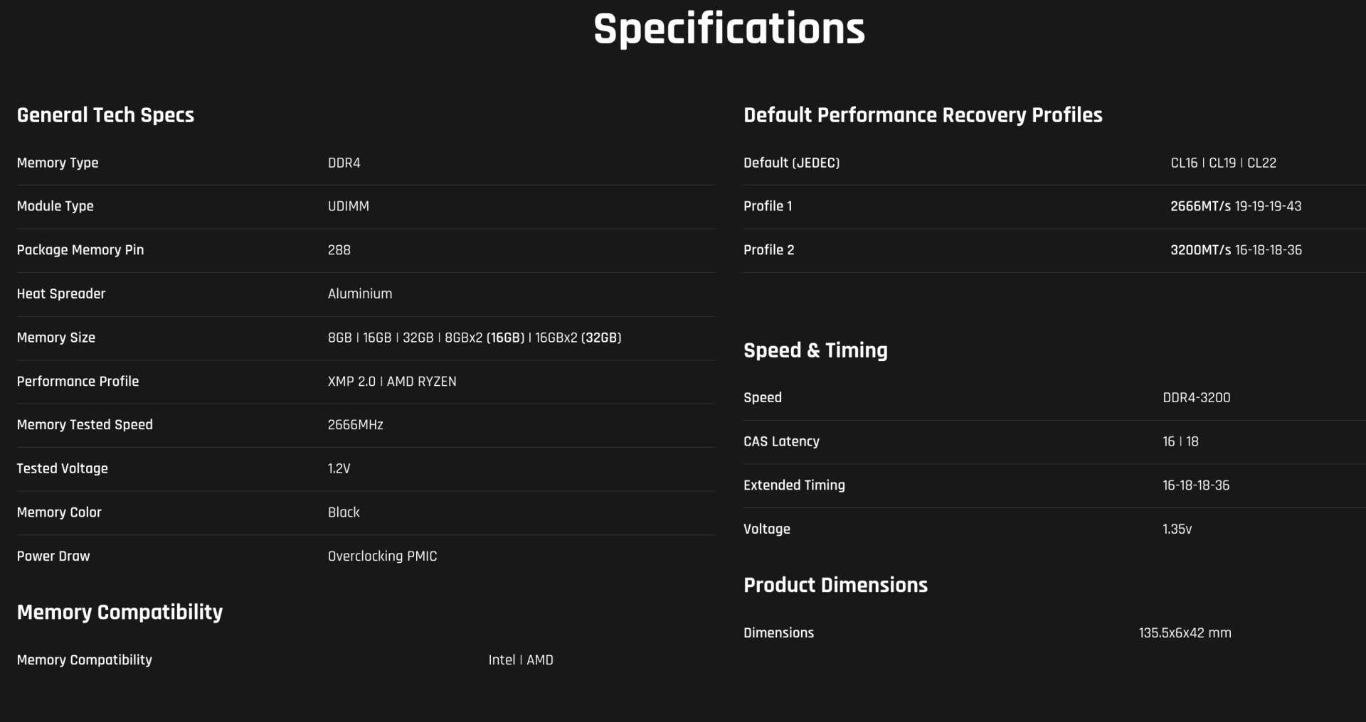 Với điện áp 1.35V, sản phẩm tiết kiệm năng lượng hơn nhưng vẫn giữ được sức mạnh cần thiết. RAM đáp ứng đầy đủ chuẩn JEDEC và được đảm bảo tương thích 100% với tất cả các nền tảng phổ biến trên thị trường hiện nay.