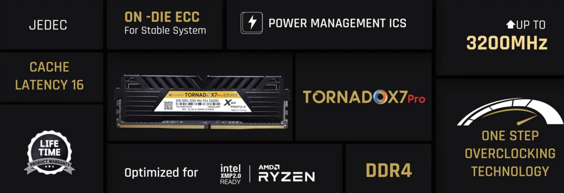 TornadoX7 Pro sở hữu tốc độ 3200MHz cùng băng thông 25,600 MB/s, mang đến khả năng xử lý mượt mà cho các tác vụ nặng, gaming hoặc làm việc đa nhiệm. Thanh RAM được trang bị heat spreader công nghệ cao, giúp tản nhiệt tối ưu để duy trì hiệu năng ổn định trong suốt quá trình hoạt động.